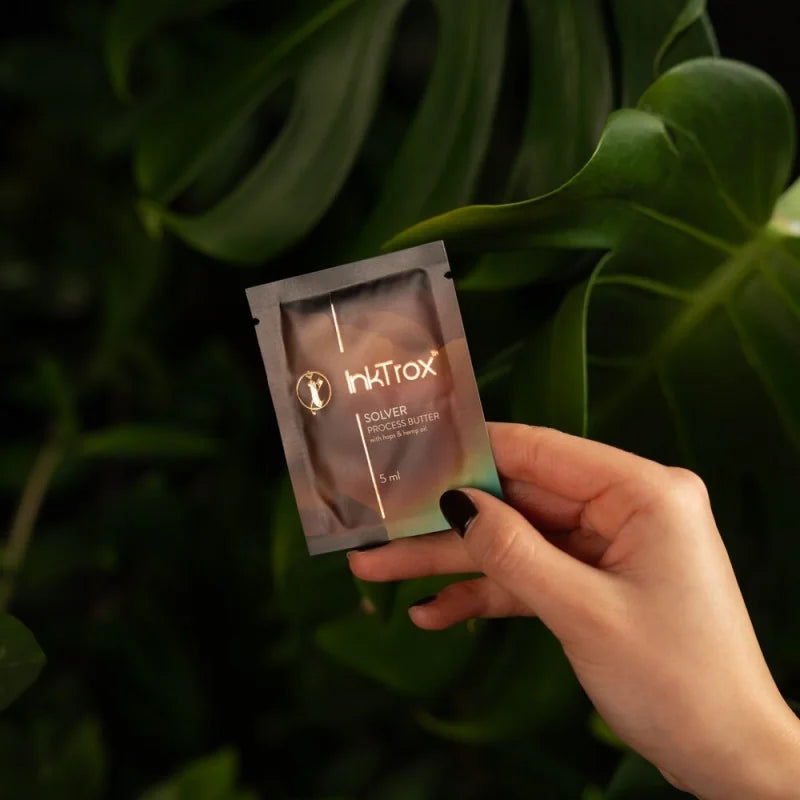 As manteigas para tatuagens InkTrox em sachets compactos oferecem: