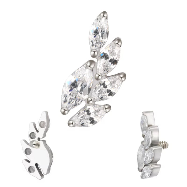Acessório de piercing em titânio de grau implantável com um elegante design de cristal marquise inspirado em ave-do-campo, criado para precisão, conforto e piercing corporal profissional.