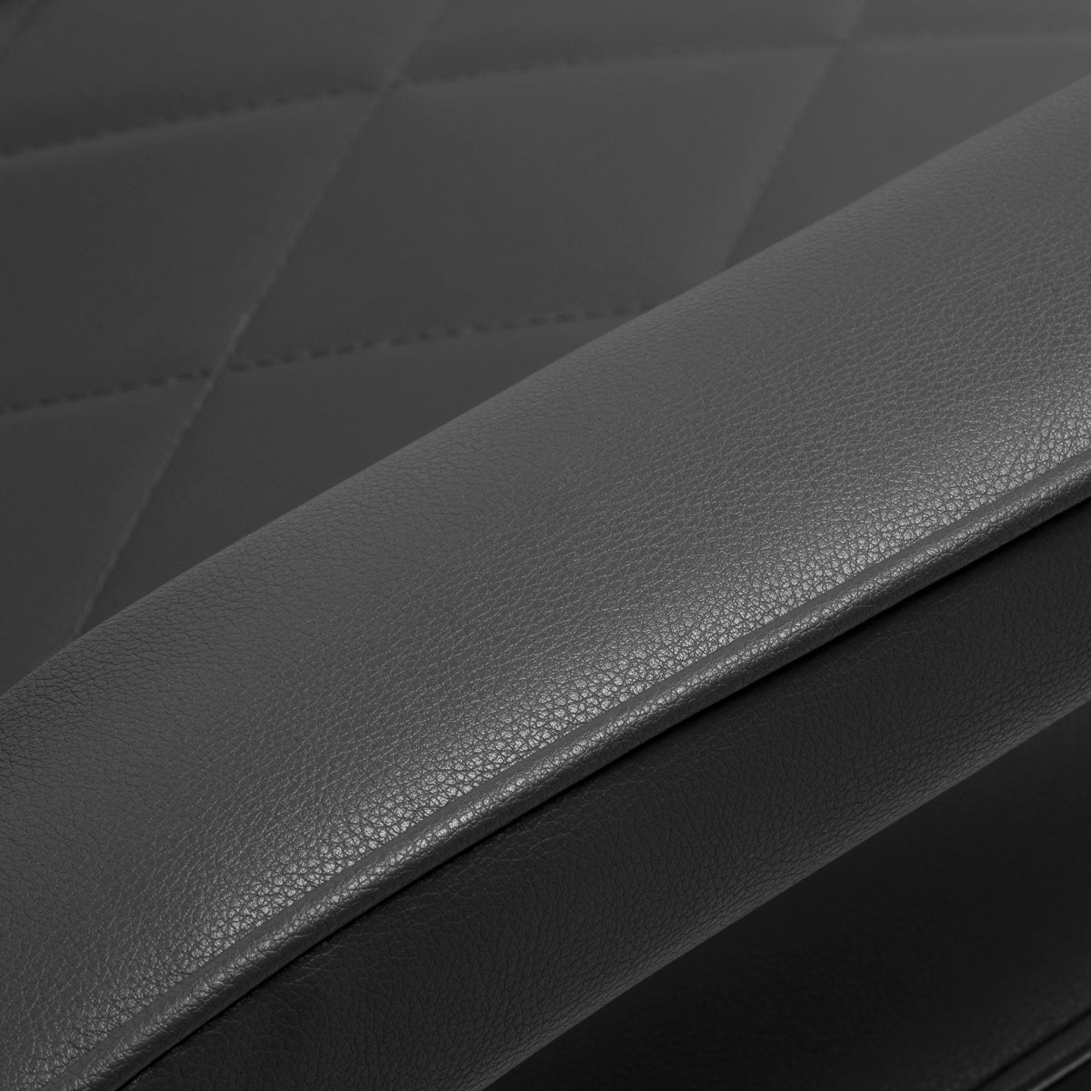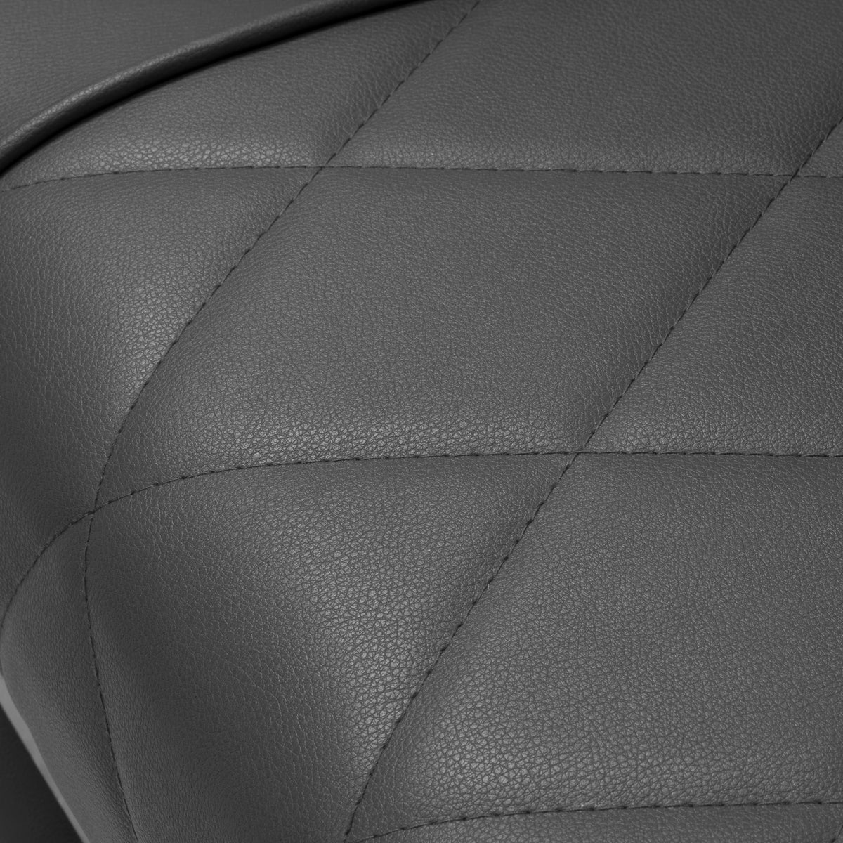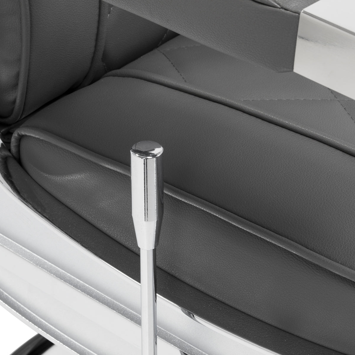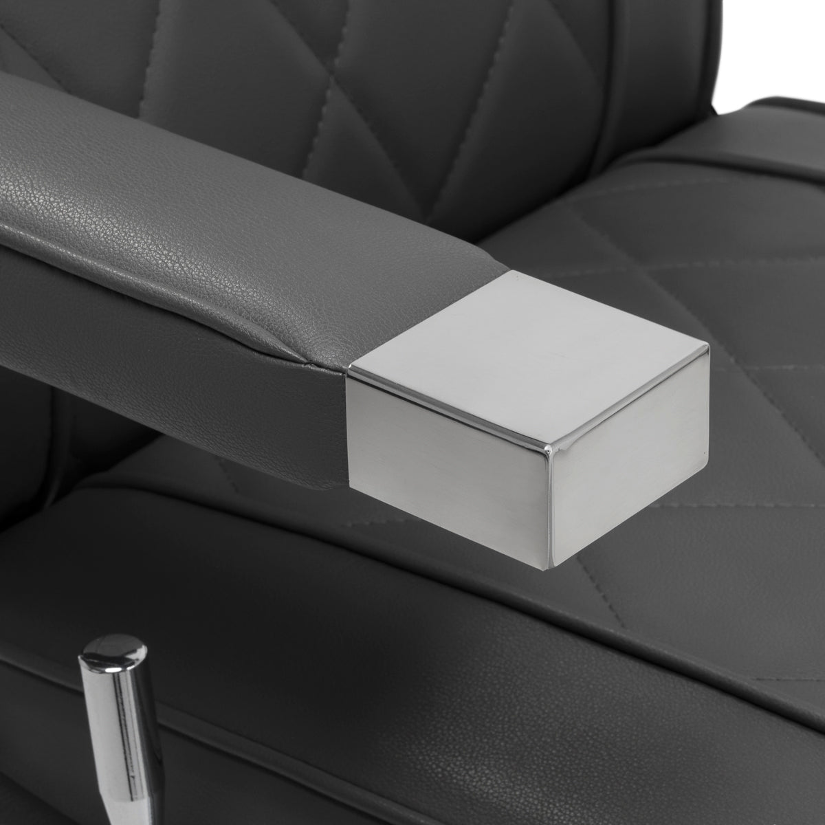 A construção sólida da base redonda da cadeira assegura estabilidade e excelente conforto para o utilizador. O enchimento do assento, feito de espuma resistente à deformação, e o estofamento fabricado em couro sintético de toque suave com acabamento mate asseguram durabilidade prolongada e conforto durante o uso prolongado. A costura elegante no estofamento adiciona carácter, evocando inspirações do design automóvel que realçam a sua aparência elegante. Esta característica também torna a cadeira resistente à humidade, durável e fácil de limpar. O estofamento em tons de cinza confere à cadeira um carácter único, e o seu estilo minimalista permite que se integre perfeitamente na decoração de qualquer barbearia.