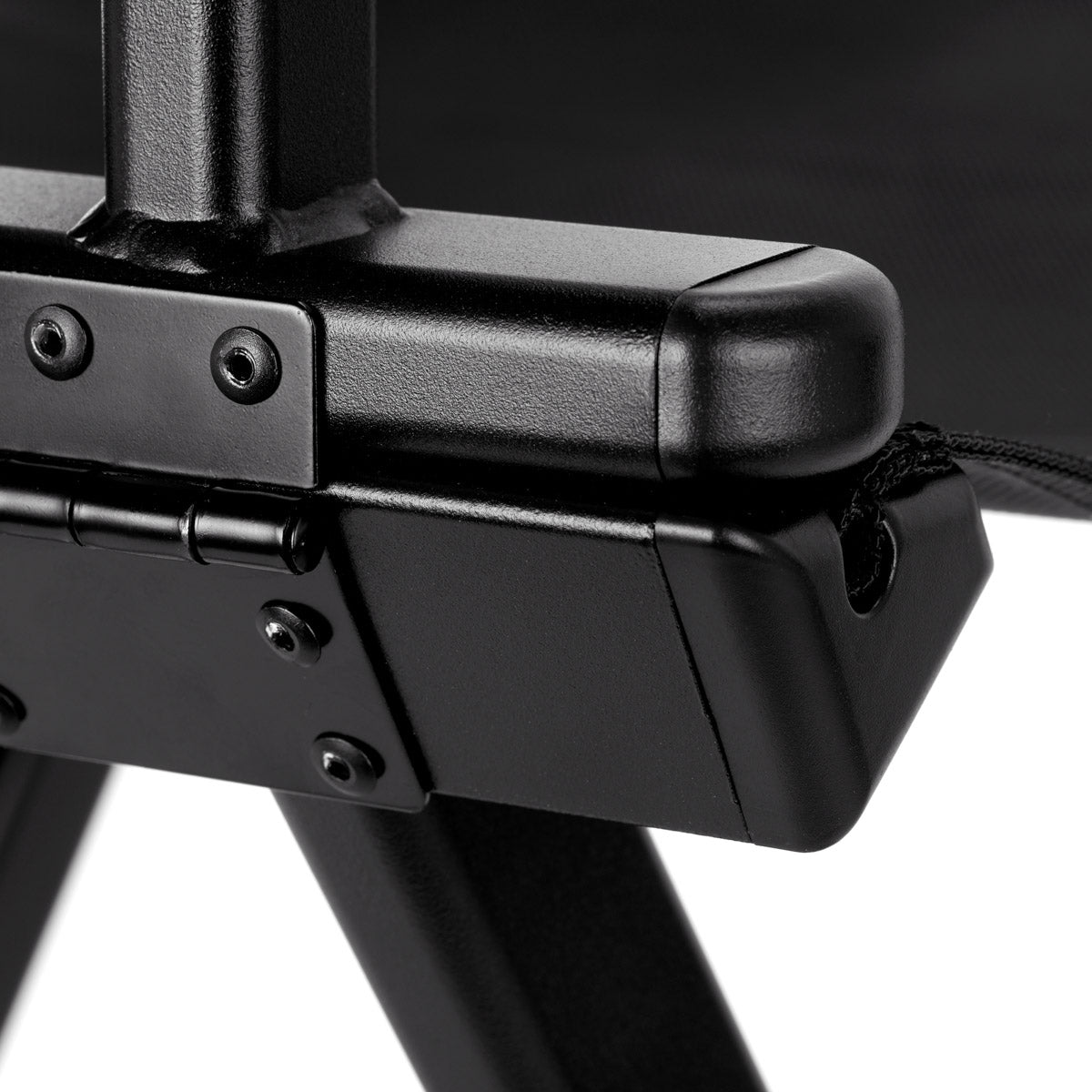 The chair has a locking system, which ensures stability during use. Once unlocked, it can be easily folded, which greatly facilitates storage and transport. Minimalistic armrests and a footrest with a width of almost 40 cm provide the user with convenience and comfort during make-up. Together with the backrest, they allow to take the right position, which is important especially during longer treatments. The applied solutions make the chair extremely practical, give plenty of working space to those offering mobile services and will work well in even the most unusual conditions.