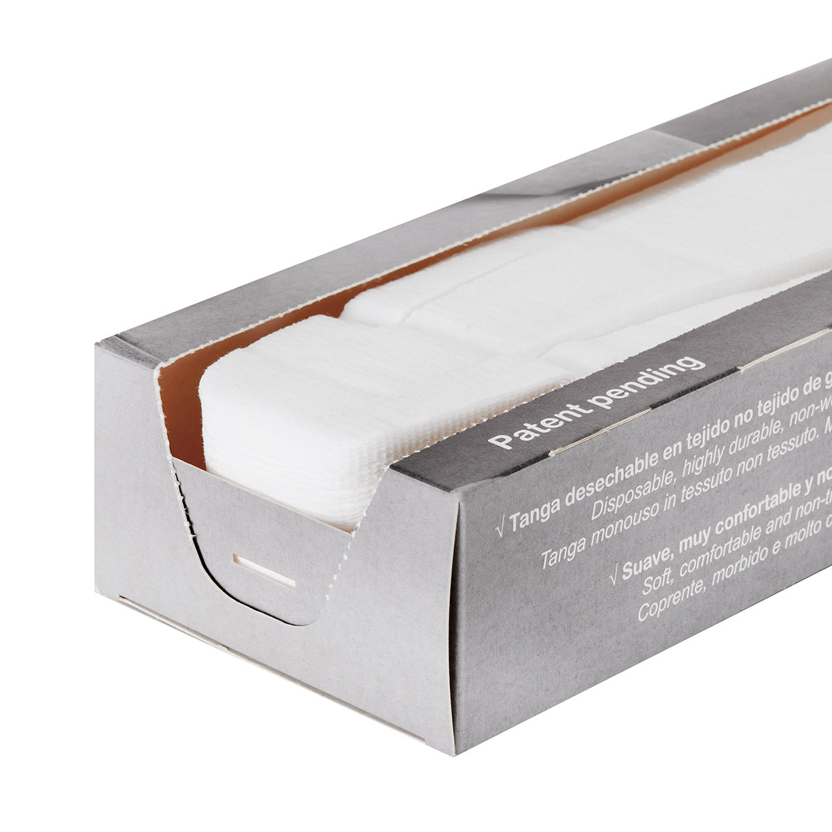 São altamente duráveis, feitas de tecido não tecido branco elástico.