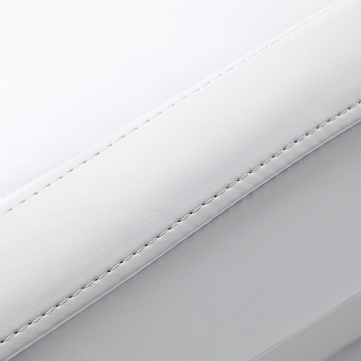 A construção sólida da cadeira garante estabilidade e durabilidade durante o uso diário. O assento preenchido com espuma de dureza devidamente selecionada garante conforto mesmo durante tratamentos prolongados. O estofamento feito de couro sintético de alta qualidade e agradável ao toque em tons de branco confere à cadeira um aspeto profissional, sendo resistente à humidade e fácil de manter. A base durável assegura estabilidade, e os acabamentos precisos realçam o caráter moderno da cadeira, melhorando a ergonomia do assento.