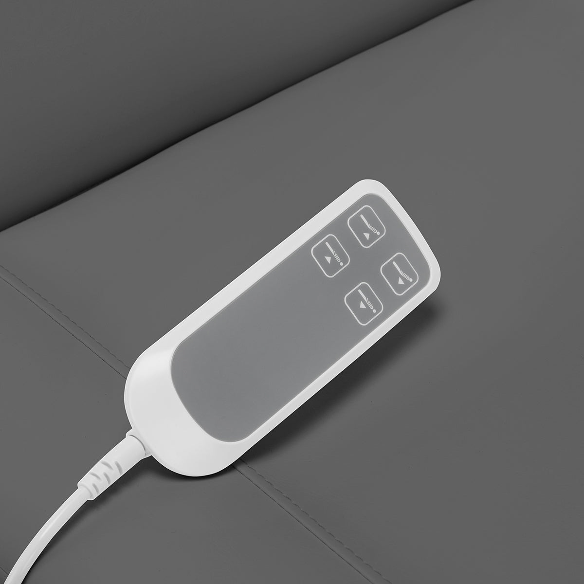 Usando um comando à distância fácil de usar, a cadeira ajusta-se suavemente em 2 planos – tem ajuste de altura e do encosto. A altura do assento pode ser ajustada de 61 cm a 84 cm, e quando totalmente estendida, a cadeira atinge um comprimento de 2 m. Estas dimensões permitem que o equipamento seja facilmente utilizado por pessoas de diferentes alturas e permitem adaptá-lo ao tratamento atual e às necessidades individuais, o que afeta tanto o conforto do utilizador como da pessoa que realiza o serviço. As pegas localizadas em ambos os lados do assento permitem pendurar o comando à distância para que esteja sempre à mão.