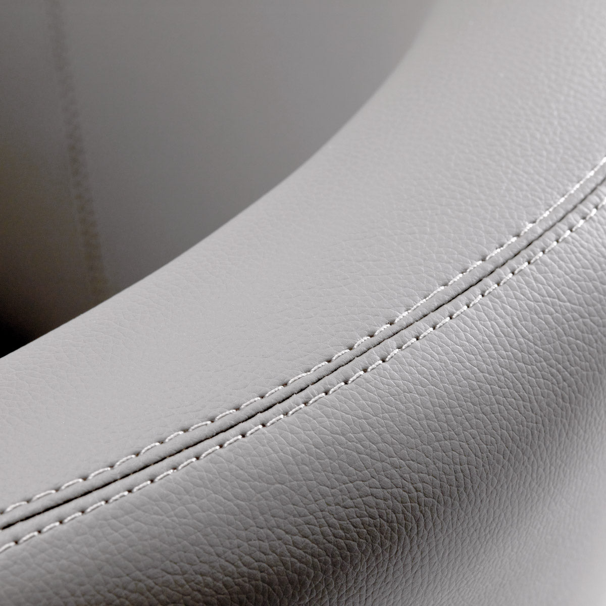 A cadeira é preenchida com espuma, que é durável e não se deforma, garantindo um uso confortável por muito tempo. O estofamento é feito de imitação de couro agradável ao toque com uma estrutura específica. Graças ao uso deste material, o equipamento é resistente à humidade, durável e fácil de limpar. A cobertura em tons de cinzento e os elementos decorativos em tons de prata conferem-lhe uma expressão de elegância intemporal. O seu acabamento clássico distinto faz com que fique ótimo em quase qualquer espaço.