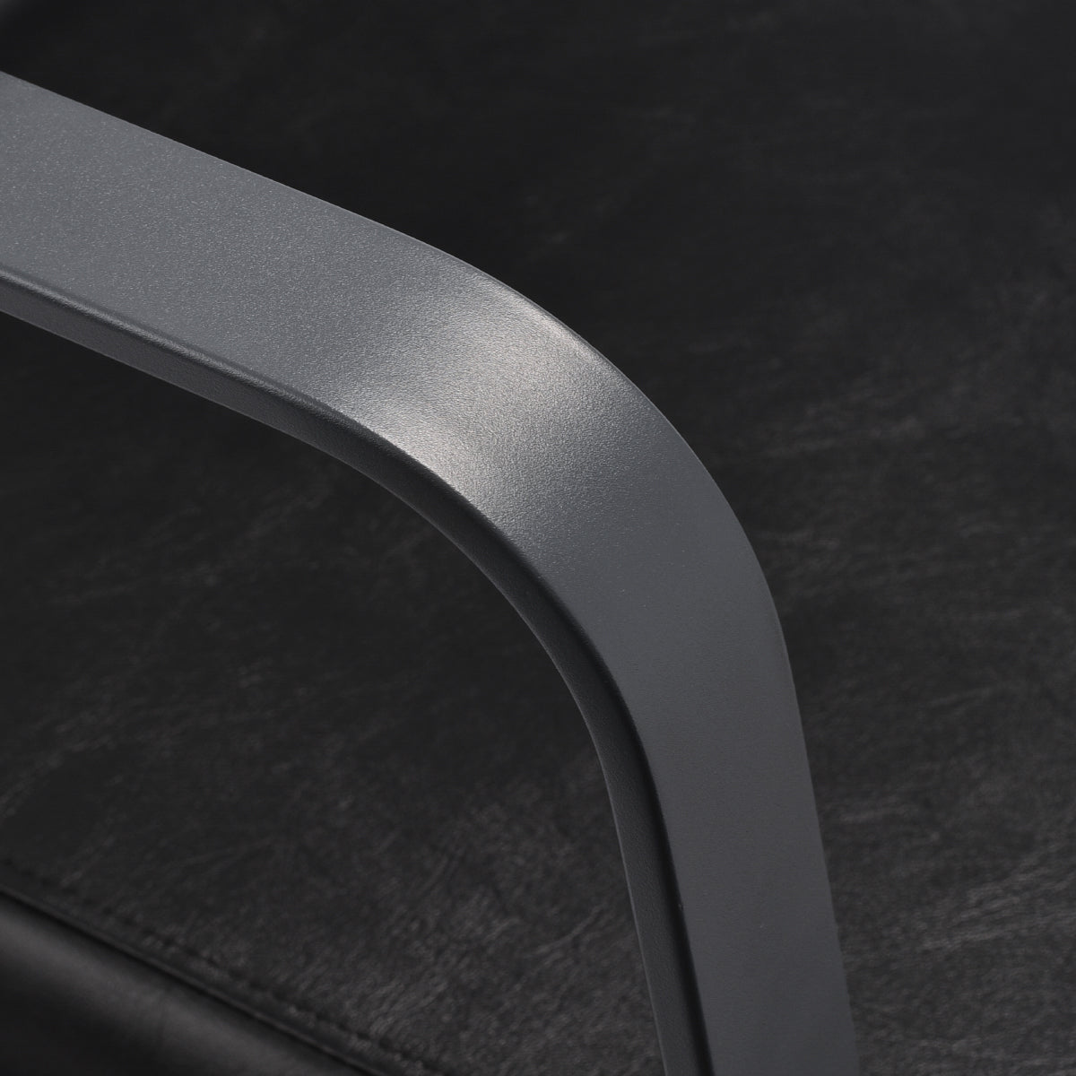 O enchimento com espuma durável e resistente à deformação e o estofamento em pele sintética agradável ao toque asseguram a durabilidade do mobiliário e o seu uso confortável por um longo período. Também torna o equipamento resistente à humidade, durável e fácil de limpar. A cobertura preta confere-lhe um carácter único. O equipamento é distinguido por um design moderno, que faz com que a cadeira tenha uma ótima aparência em muitos salões profissionais.