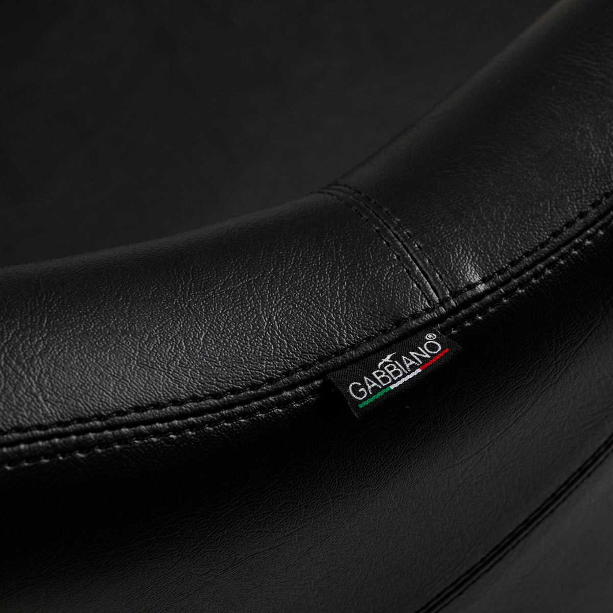 A cadeira é preenchida com espuma, que é durável e não se deforma, garantindo um uso confortável por muito tempo. O estofamento é feito de couro sintético agradável ao toque com uma estrutura específica. Graças ao uso deste material, o equipamento é resistente à humidade, durável e fácil de limpar. A cobertura em tons de preto e os elementos decorativos em tons dourados conferem-lhe uma expressão de elegância intemporal. O seu acabamento clássico distinto faz com que fique ótimo em quase qualquer espaço.