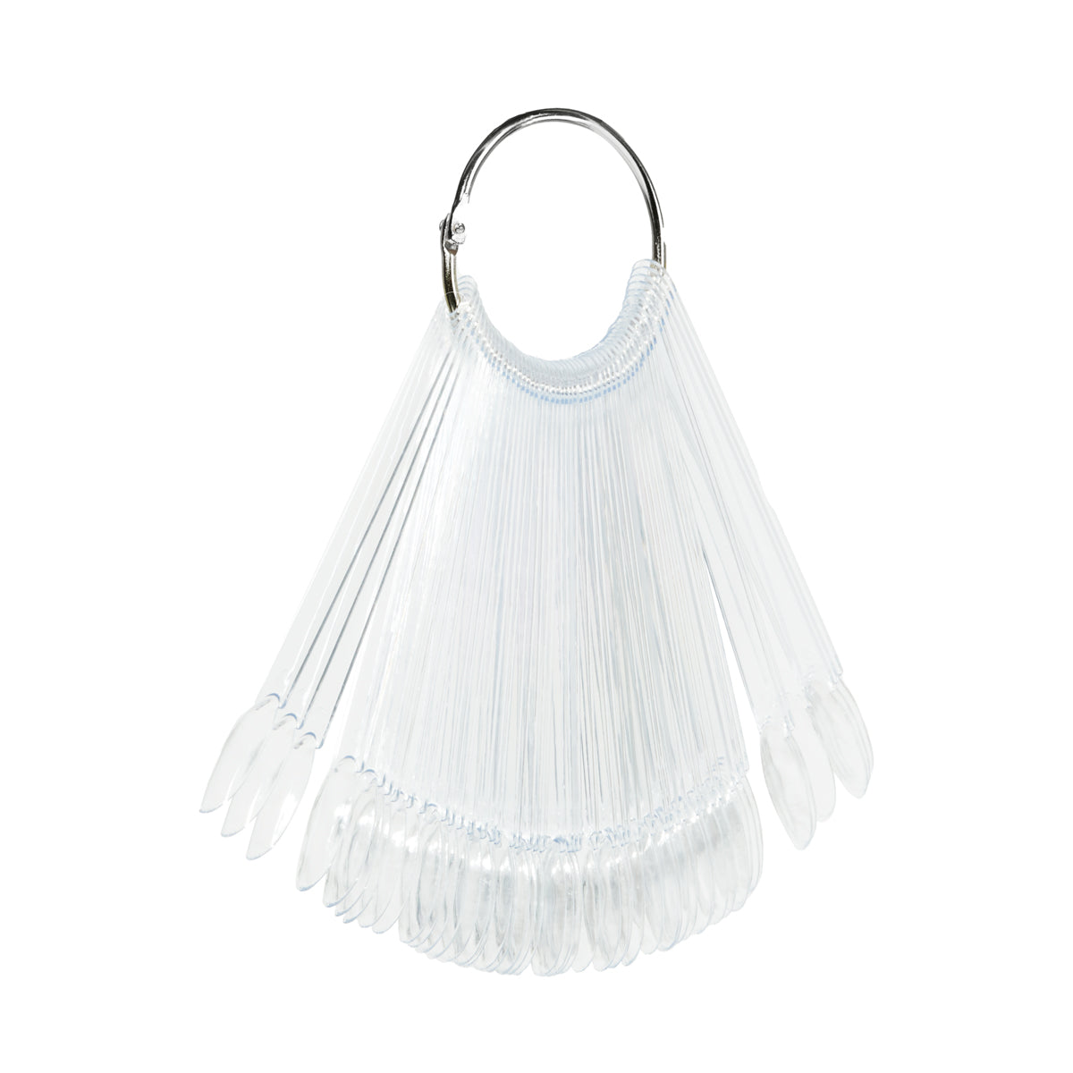 A amostra transparente permite uma apresentação estética de todas as cores de vernizes clássicos e híbridos ou géis. Consiste em 50 pontas individuais de forma oval e num tamanho correspondente a unhas reais. É fixada com um disco prático e destacável, o que torna fácil guardar tudo. Cada ponta é feita de plástico durável.