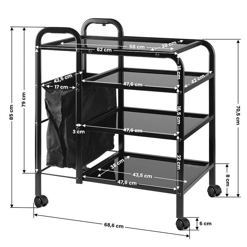 - dimensões da prateleira superior: comprimento 62 cm, largura 42 cm