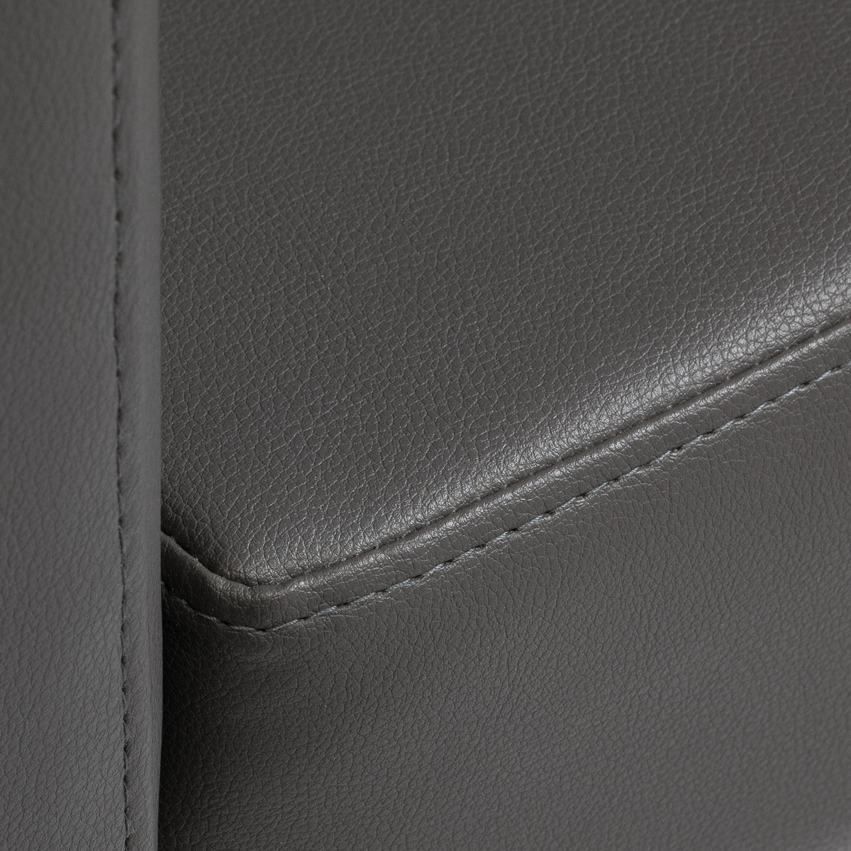 Cadeira ergonomicamente perfilada, preenchida com espuma durável e resistente à deformação, proporciona alto conforto de uso tanto para o cliente como para o profissional. Apoios de braços estofados com costura lateral decorativa permitem uma posição natural dos braços e ombros, apoia a postura correta enquanto sentado. A estrutura da cadeira foi concebida para proporcionar conforto durante vários procedimentos, e o encosto devidamente reclinado apoia a coluna vertebral e aumenta o conforto das visitas. O estofamento feito de couro sintético de alta qualidade em tons de cinza distingue-se pela sua aparência elegante, durabilidade e facilidade de limpeza. O conjunto cria uma peça de mobiliário moderna e esteticamente agradável que se encaixa perfeitamente na decoração de um salão profissional, conferindo ao interior um carácter único.