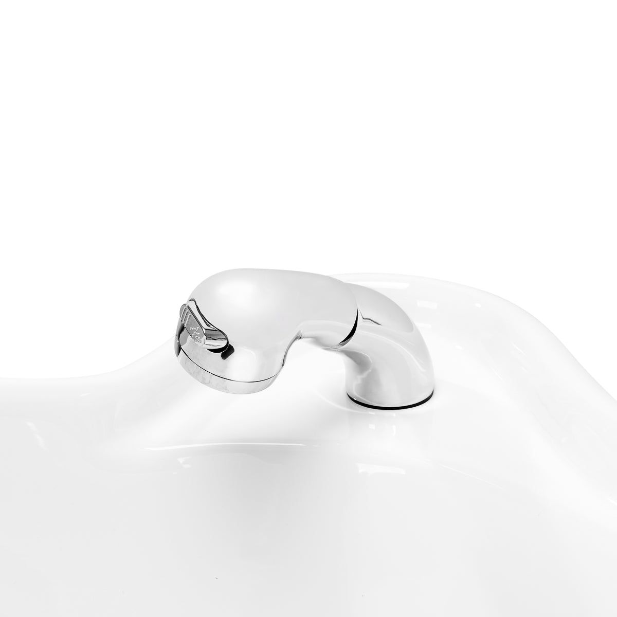A profundidade da taça da bacia cerâmica em tons de branco permite a realização confortável e eficaz de uma ampla gama de serviços de cabeleireiro, prevenindo salpicos excessivos de água e produtos usados durante o tratamento. O material utilizado torna a bacia durável, resistente a descolorações e riscos, e muito fácil de manter limpa. Uma gola devidamente perfilada proporciona conforto durante a lavagem do cabelo. A utilização de um suporte especial na taça garante suporte adequado para a cabeça, para que o seu peso não recaia sobre o pescoço. A solução inovadora previne tensão e desconforto na área do pescoço e assegura alto conforto, mesmo durante tratamentos longos. Adicionalmente, graças à cobertura confortável em plástico preto, o cliente não sentirá o desconforto da superfície fria da cerâmica.