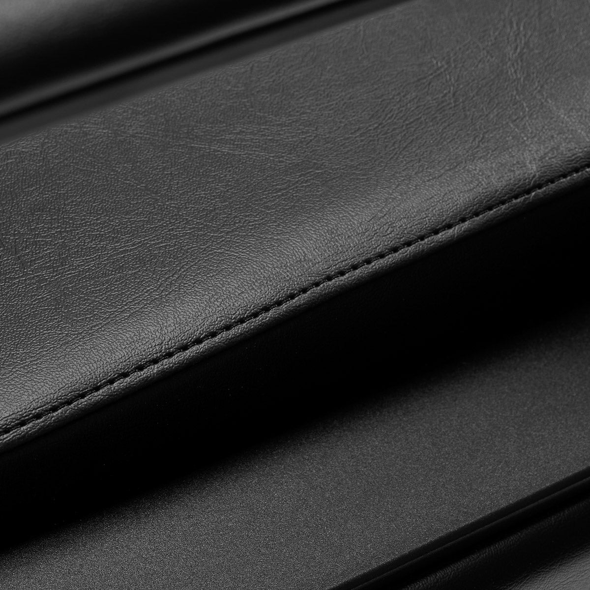 Uma cadeira devidamente perfilada preenchida com espuma durável assegura elevado conforto de utilização e os apoios de braços geométricos parcialmente estofados permitem o posicionamento correto dos ombros do cliente. O encosto está colocado num ângulo ótimo e proporciona excelente suporte para a coluna vertebral. A cobertura em pele sintética em tons de preto garante durabilidade a longo prazo e facilidade de limpeza. O aspeto original e elegante da lavagem acrescenta uma expressão única ao interior. As pernas de estabilização acrescentam estabilidade e enfatizam subtilmente o carácter estiloso da unidade de lavagem para cabeleireiro. O conjunto inclui acessórios completos com acabamento mate em tons de preto, incluindo torneira, cabeça de chuveiro e mangueiras dedicadas para fornecer um conjunto completo de ferramentas para o trabalho.