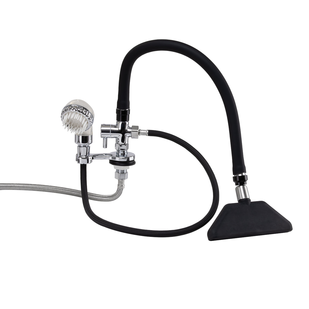 Torneira de queda d'água com misturador, concebida para lavatórios de cabeleireiro, é uma parte indispensável do equipamento profissional de salão. Facilita a ligação conveniente da água à lavagem e proporciona conforto tanto ao cabeleireiro como ao cliente. Graças às mangueiras de ligação em aço trançado incluídas, a torneira caracteriza-se por alta durabilidade e resistência à abrasão.