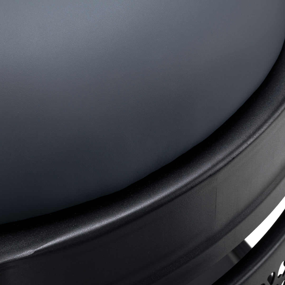 Uma construção base sólida garante estabilidade e alto conforto de uso. O enchimento do assento feito de espuma durável e resistente à deformação e o estofamento em couro sintético agradável ao toque com acabamento mate asseguram durabilidade a longo prazo e uso confortável do mobiliário. Os materiais utilizados também tornam o equipamento resistente à humidade, durável e fácil de limpar. A capa em tons de grafite juntamente com o apoio para os pés decorado, confere-lhe um carácter único. A cadeira, com o seu design distintivo que remete ao estilo vintage, encaixa-se perfeitamente na atmosfera das barbearias, realçando a sua ambiência única.