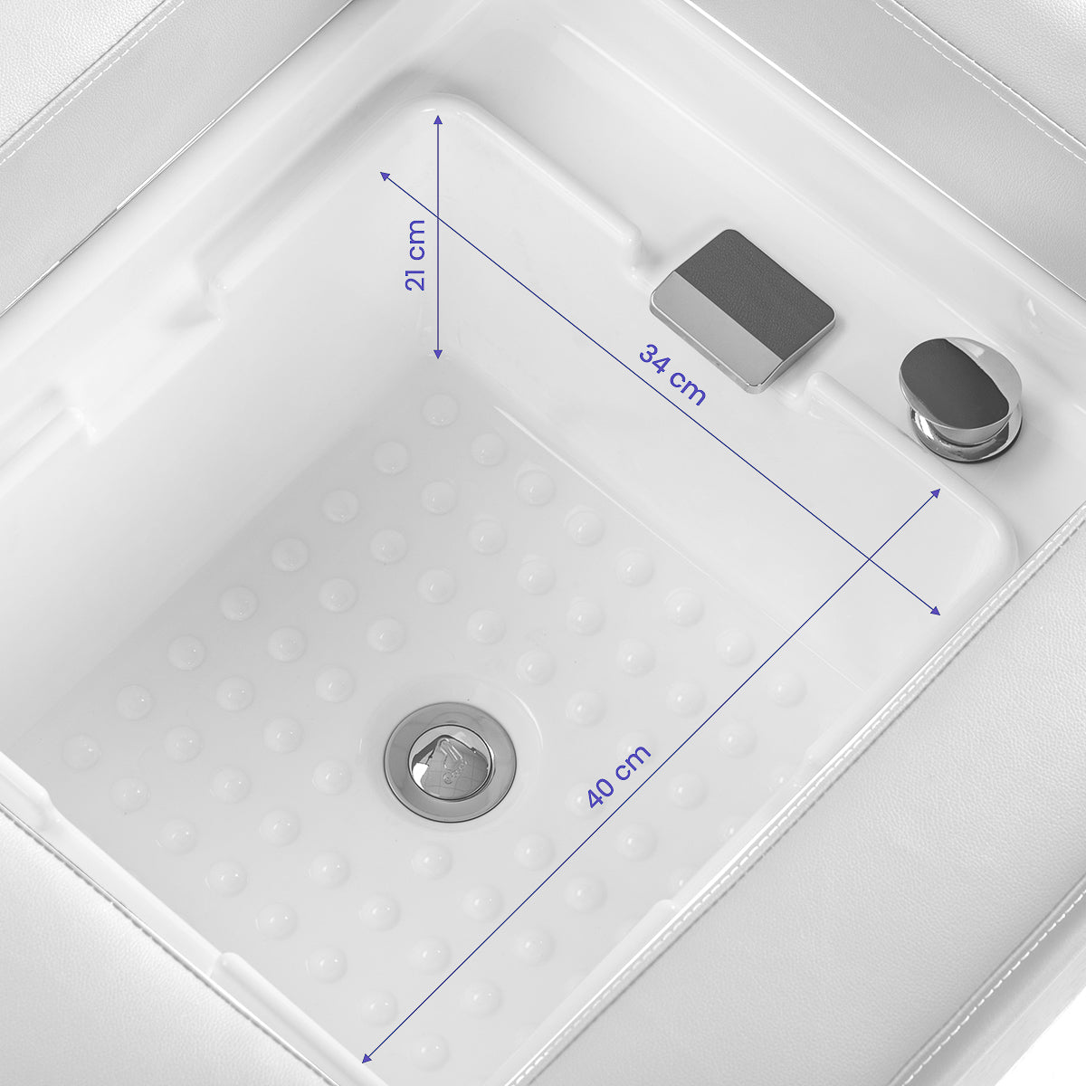 Uma bacia cerâmica profunda em tons de branco reduz eficazmente os salpicos de água e dos produtos usados durante os tratamentos, assegurando limpeza e conforto no trabalho. Feita de material durável, a bacia é resistente a descolorações, riscos e danos, e a sua superfície lisa torna a limpeza excecionalmente fácil. O seu perfil distinto não só facilita o acesso para a pessoa que realiza o serviço, como também confere ao lavatório um aspeto elegante e moderno. A combinação de estética e funcionalidade eleva o padrão de qualquer espaço profissional.