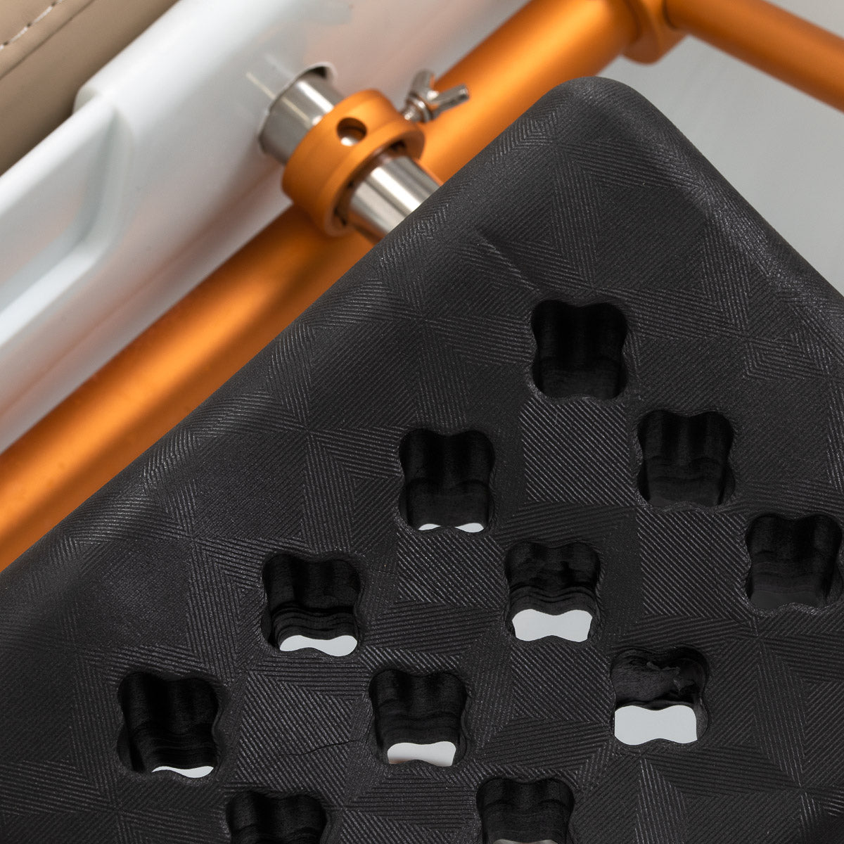 O apoio de cabeça ajustável, com opção de extensão e alteração do ângulo de inclinação, permite um ajuste perfeito às necessidades do utilizador, garantindo o máximo conforto. O conjunto inclui também almofadas ergonómicas, incluindo um apoio de cabeça com abertura para o rosto, que amplia a gama de aplicações – desde tratamentos do couro cabeludo a massagens e várias terapias corporais e faciais. Estas características práticas tornam a espreguiçadeira um equipamento versátil para salões de beleza e bem-estar, combinando conforto do cliente com a funcionalidade necessária ao profissional.