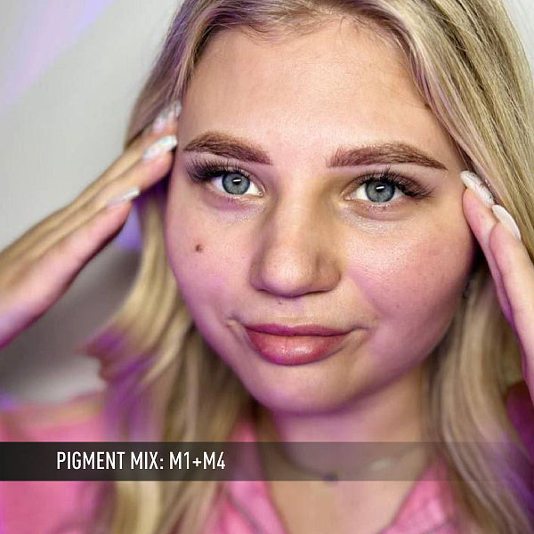 M1-Dark Blonde oferece um pigmento equilibrado e natural com uma base amarelo-esverdeada acentuada por subtis tons vermelhos, perfeito para realçar sobrancelhas loiras e loiro-escuro.