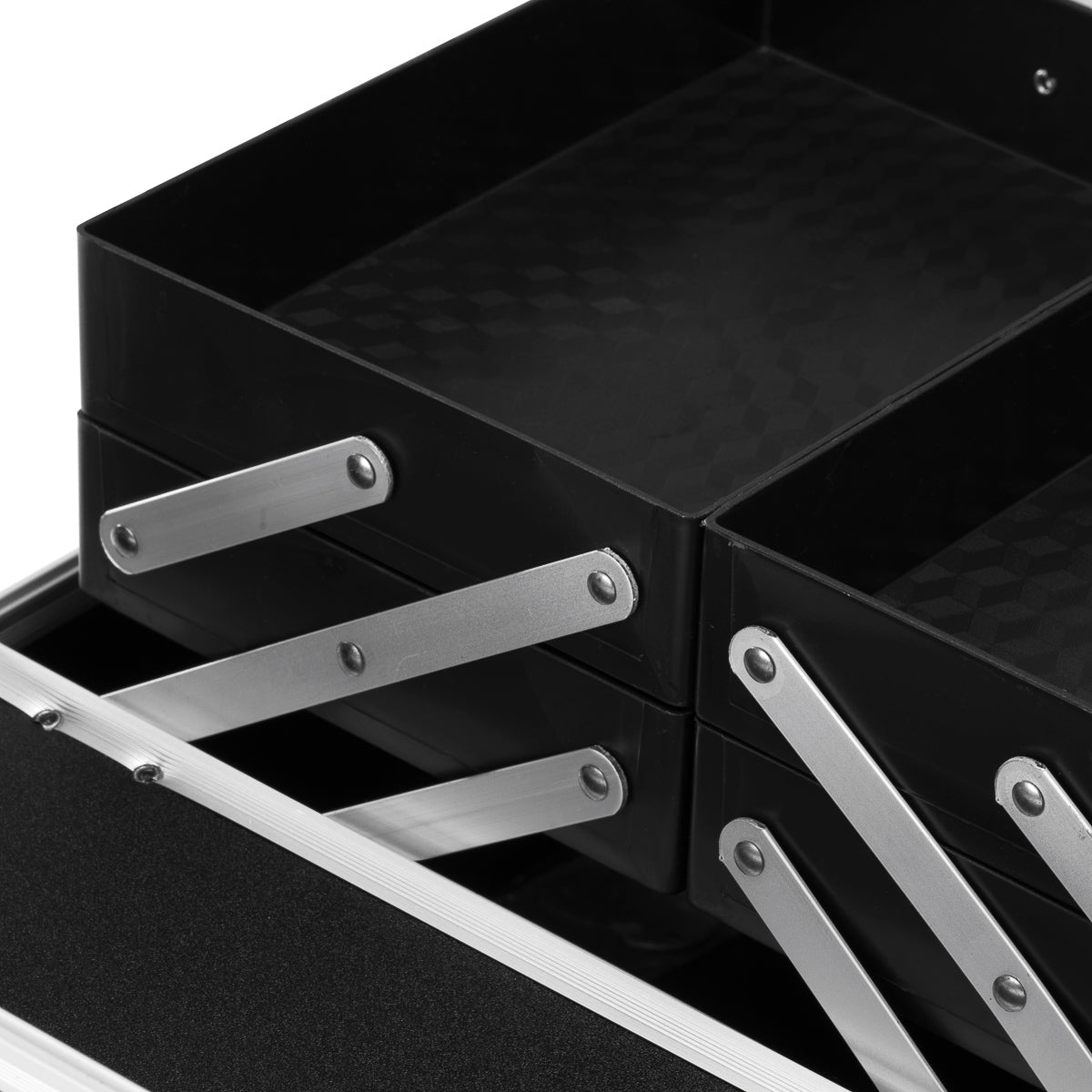 A elegante mala de cosméticos 44 é uma combinação de funcionalidade e estilo, garantindo uma organização conveniente, armazenamento seguro e acesso rápido às ferramentas essenciais. É perfeita para uso diário, especialmente para estilistas móveis. O interior espaçoso com prateleiras deslizantes permite organizar acessórios, e a câmara espaçosa comporta uma broca para unhas, preparações ou outras ferramentas necessárias.