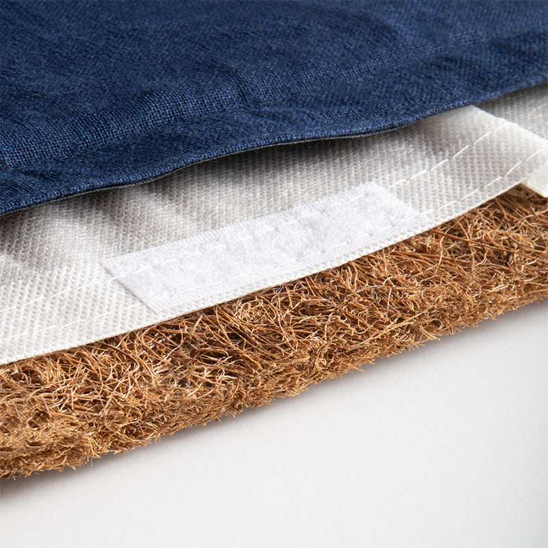 o tapete é feito de materiais de alta qualidade, todos os elementos utilizados são anti-alérgicos. a capa do tapete é feita de linho 100% natural de alta qualidade, no interior do tapete há um inserto espesso feito de fibra natural de coco, graças ao qual o tapete é natural e ecológico. a fibra é latexada, por isso não absorve humidade, e o cartucho mantém-se higiénico.