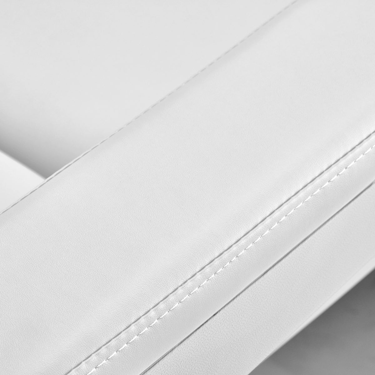 A cadeira é preenchida com espuma de dureza adequada e revestida com imitação de pele agradável ao toque em tons de branco. Graças à utilização de um material que é fácil de manter limpo e resistente a desinfetantes selecionados, o equipamento é confortável de usar, resistente à humidade e fácil de limpar. Uma base sólida feita de material branco durável garante estabilidade durante os tratamentos. As bainhas devidamente perfiladas conferem à cadeira um aspeto elegante e tornam o assento ergonómico.