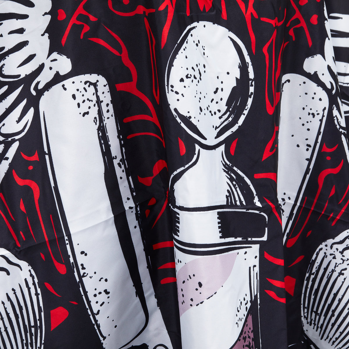 O produto é feito de material preto impermeável, que permite uma limpeza sem problemas e protege adequadamente contra todos os tipos de salpicos. Graças ao seu tamanho universal e à possibilidade de ajuste graças aos fechos no pescoço, serve para todos os clientes, independentemente da sua altura, garantindo conforto durante os procedimentos.