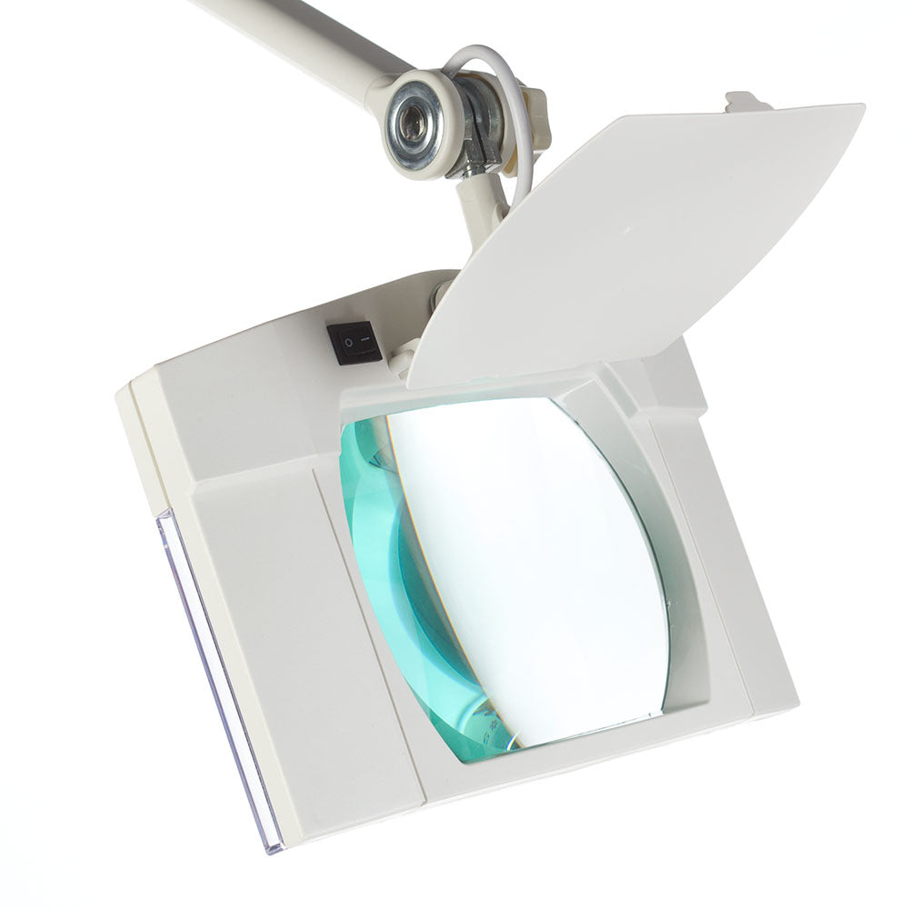 14. Lâmpada com lente de aumento - lâmpada fácil de montar e ajustável com lente de aumento refrativa de alta qualidade e sistema de iluminação incorporado, permitindo um diagnóstico perfeito da pele. A cabeça da lâmpada é montada num braço para fácil posicionamento à distância e altura desejadas. A lâmpada proporciona conforto durante os procedimentos cosméticos.
