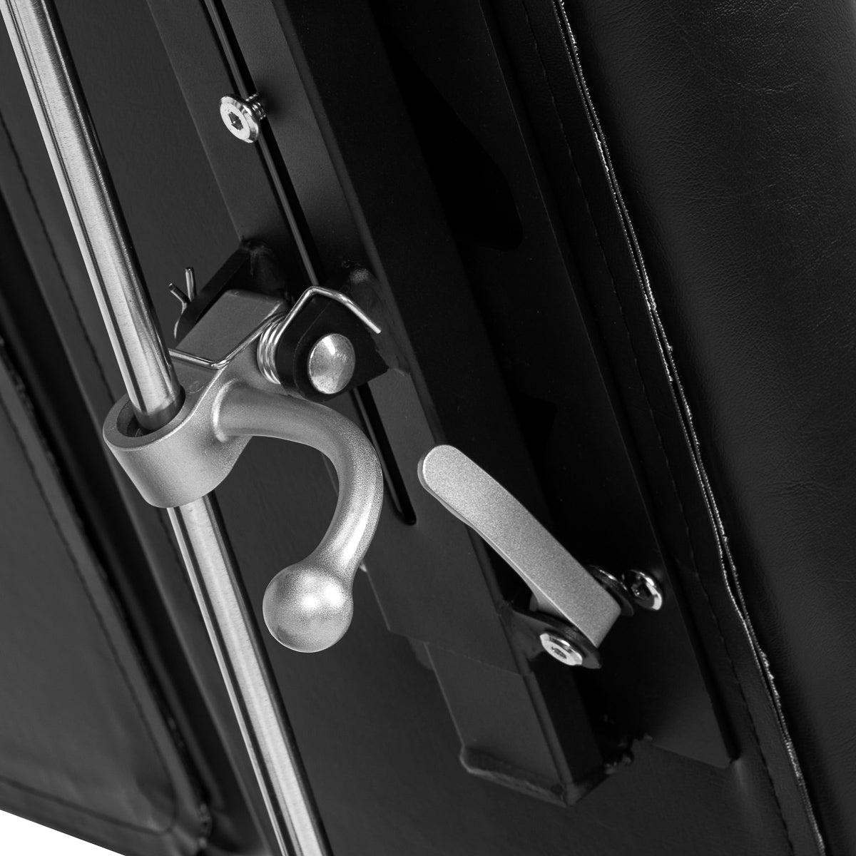 A cadeira possui mecanismos especializados que permitem adaptá-la às necessidades do utilizador e à especificidade da indústria da tatuagem. Os ângulos do encosto são ajustados manualmente e bloqueados usando uma alavanca. Graças às capacidades de inclinação, o encosto pode ser colocado numa posição reclinada. O mecanismo de rotação completa afeta significativamente a eficiência e o conforto do trabalho. Todas estas características proporcionam uma considerável conveniência de uso.