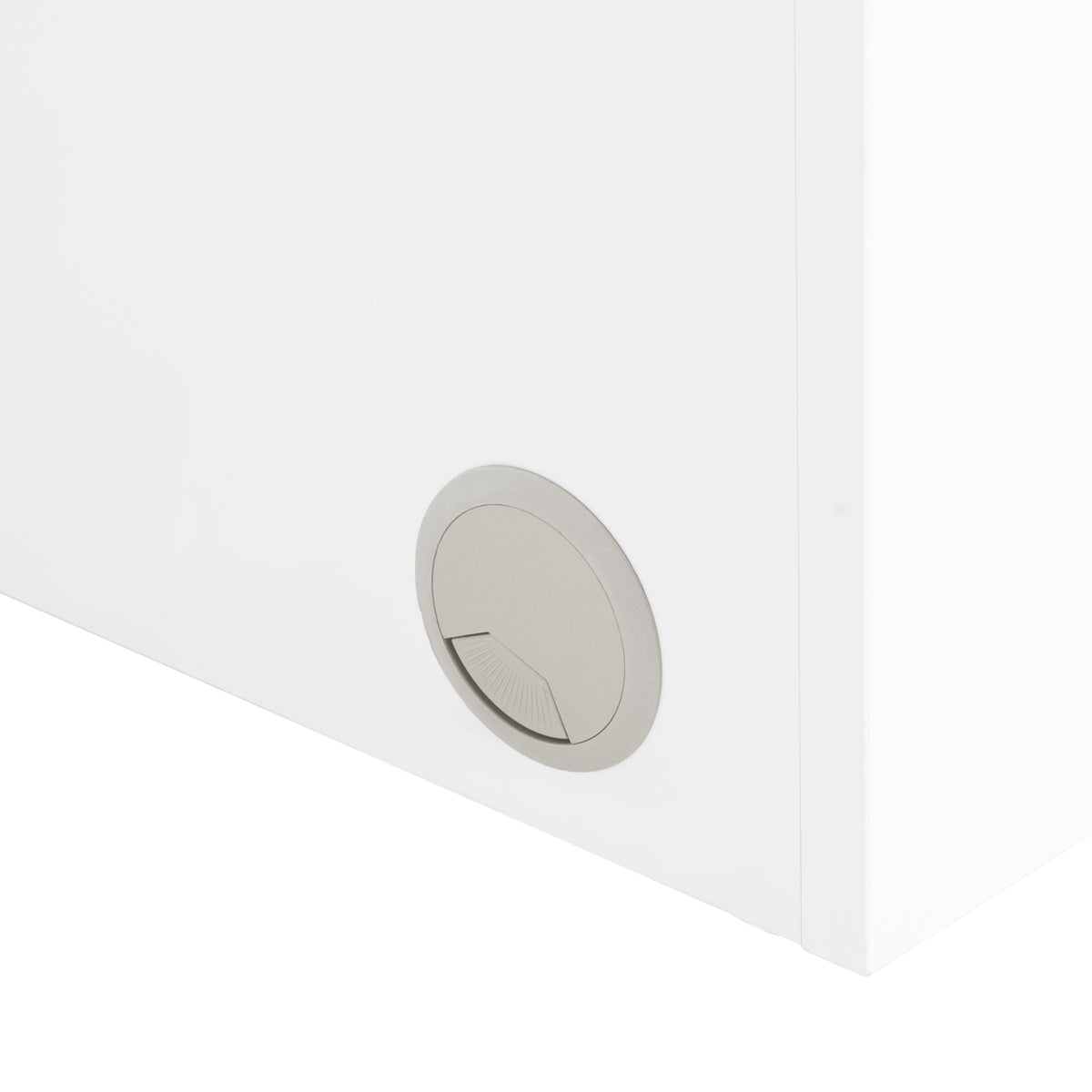 Armários em ambos os lados com três gavetas espaçosas facilitam muito a organização e a manutenção em ordem dos cosméticos e ferramentas mais necessários. Graças a isto, os produtos essenciais estão sempre à mão, o que se traduz em eficiência no trabalho. A secretária possui orifícios especiais na superfície para o encaminhamento de cabos dos dispositivos necessários, permitindo manter facilmente a ordem e a estética do posto de trabalho.