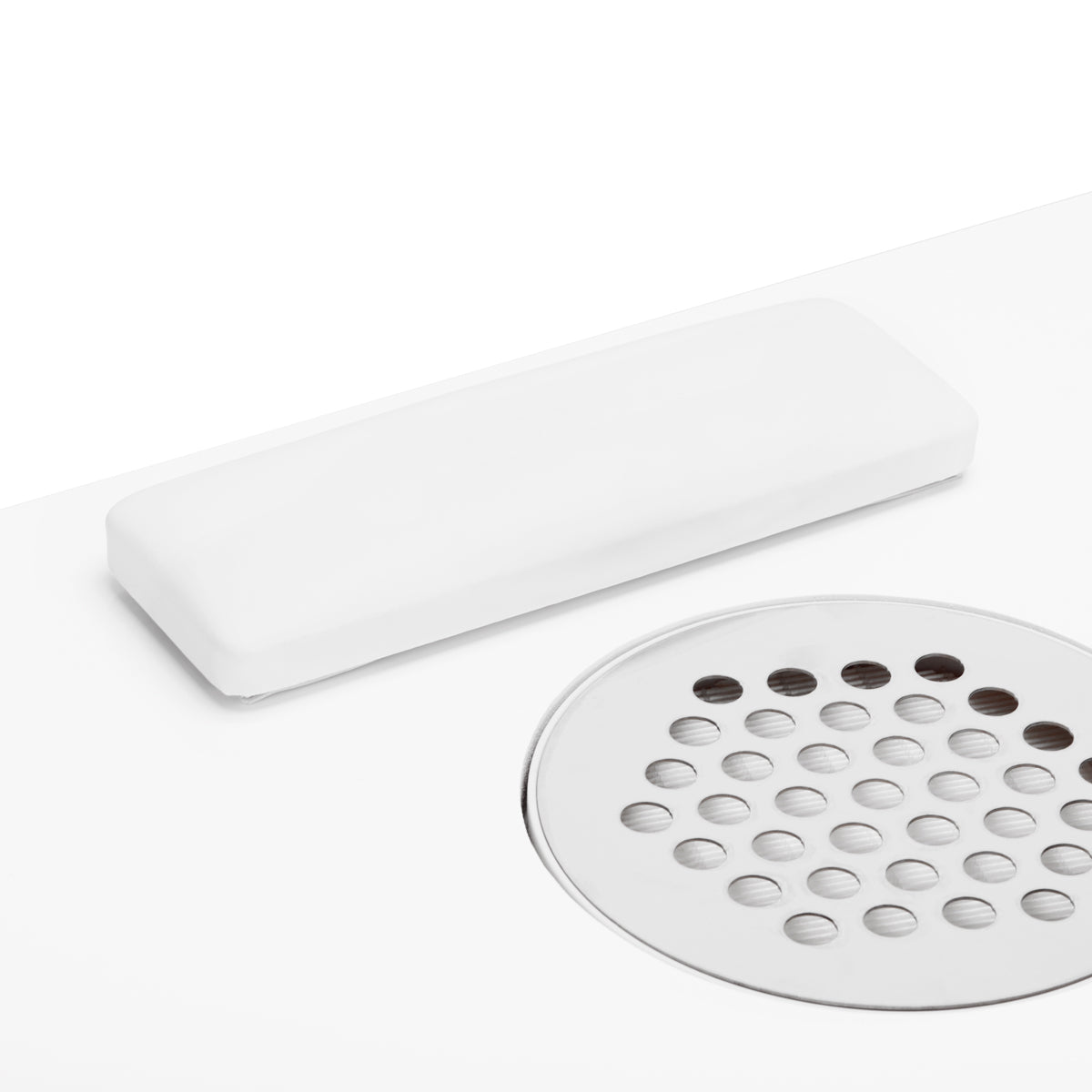 O inovador aspirador de pó em cassete incorporado na bancada melhora significativamente o conforto e a higiene no trabalho, removendo eficazmente o pó gerado durante tratamentos estéticos, como a manicure. Graças a este equipamento, o ar no salão mantém-se limpo e o local de trabalho livre de sujidade, aumentando a segurança tanto para o esteticista como para os clientes. O coletor de pó é fácil de usar e de manter, o que aumenta ainda mais a sua funcionalidade. É possível adquirir um filtro de substituição para a cassete do aspirador (SKU 132085).