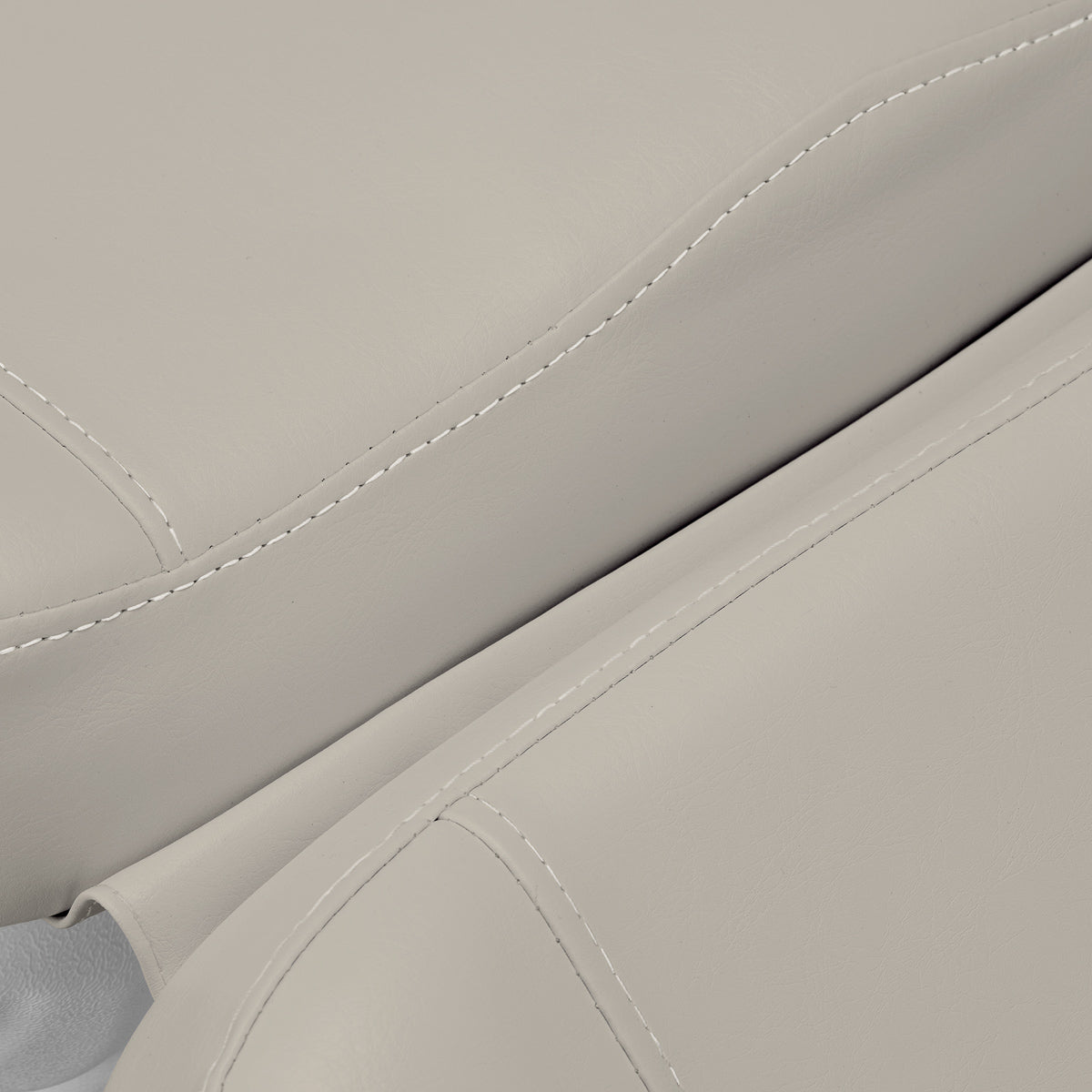 A cadeira está preenchida com espuma moldada e revestida com couro sintético agradável ao toque em tons de bege. O material utilizado torna o equipamento fácil de limpar, bem como resistente à humidade e a desinfetantes selecionados. Uma base sólida feita de material durável em tons de branco garante estabilidade durante os tratamentos. As bainhas devidamente perfiladas conferem à cadeira um aspeto elegante e tornam o assento ergonómico. Design minimalista, simples e cores clássicas permitem que se integre em qualquer interior.