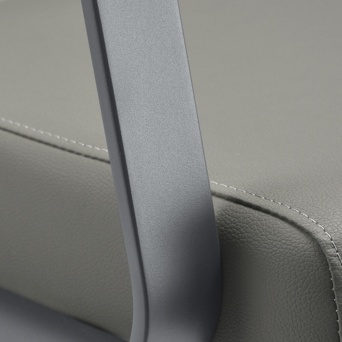 A cadeira perfilada proporciona suporte lombar adequado e, portanto, elevado conforto de utilização. Os apoios de braços metálicos em tons de cinzento com forma geométrica permitem o posicionamento correto dos ombros do cliente. O enchimento com espuma durável e resistente à deformação e o estofamento em pele sintética agradável ao toque em tons de cinzento garantem a durabilidade do mobiliário, facilidade de limpeza e conforto de utilização por muito tempo. A aparência original e elegante da unidade de lavagem de cabelo confere ao interior uma expressão única. O conjunto inclui ferragens completas em tons de preto, incluindo uma torneira, um chuveiro e mangueiras dedicadas para fornecer um conjunto completo de ferramentas para o trabalho.