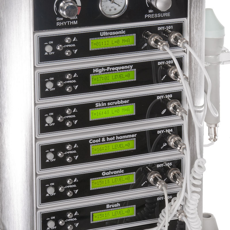 9. Quente-Frio - ou seja, a cabeça de aquecimento e arrefecimento. A cabeça de aquecimento é usada antes do procedimento para dilatar os vasos sanguíneos e acelerar a absorção de nutrientes. Após o tratamento, a cabeça de arrefecimento acalma as terminações nervosas, irritações e vermelhidão da pele e fecha os poros.