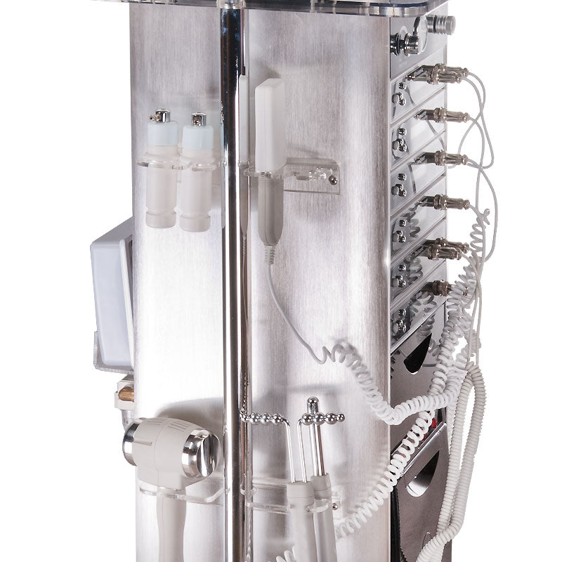 10. Vapozone, ozono, aromaterapia - hidrata a pele com vapor, amacia a pele, abre os poros, relaxa os músculos faciais, facilitando a limpeza e preparando a pele para tratamentos posteriores. Permite o uso de aromaterapia e fitoterapia. O ozono adicional tem efeito bactericida.