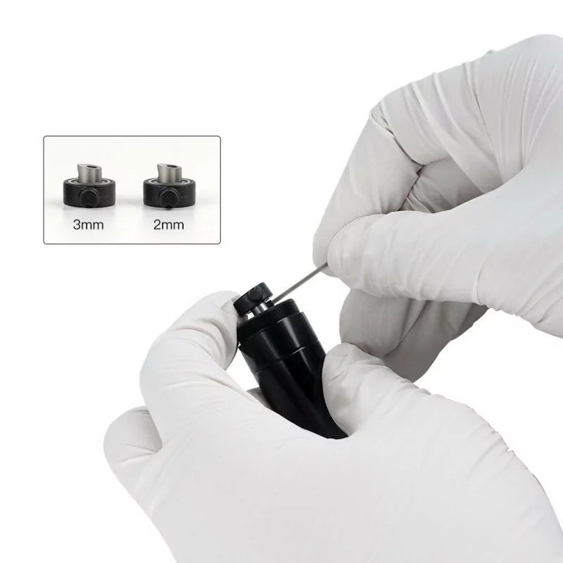 Esta máquina em forma de caneta apresenta cames intercambiáveis com comprimento de traço de 2 mm e 3 mm, oferecendo aos artistas a flexibilidade para adaptar a máquina a diferentes procedimentos, desde trabalhos delicados de maquilhagem permanente até detalhes de pequenas tatuagens. Os componentes principais são facilmente intercambiáveis, facilitando a manutenção eficiente e a personalização.
