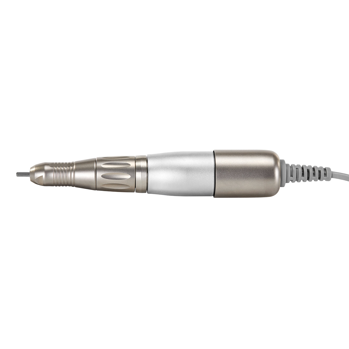 A cabeça fina encaixa bem na mão e permite um trabalho confortável e preciso. Graças ao equilíbrio adequado e à redução significativa das vibrações, o seu uso não cansa excessivamente a mão, permitindo até muitas horas de tratamento. Está equipada com um sistema Twist-Lock fácil de usar, que permite a substituição rápida e fácil das brocas para unhas. Trabalhar com o dispositivo é, portanto, excepcionalmente fácil e intuitivo, o que também será apreciado por utilizadores mais exigentes.
