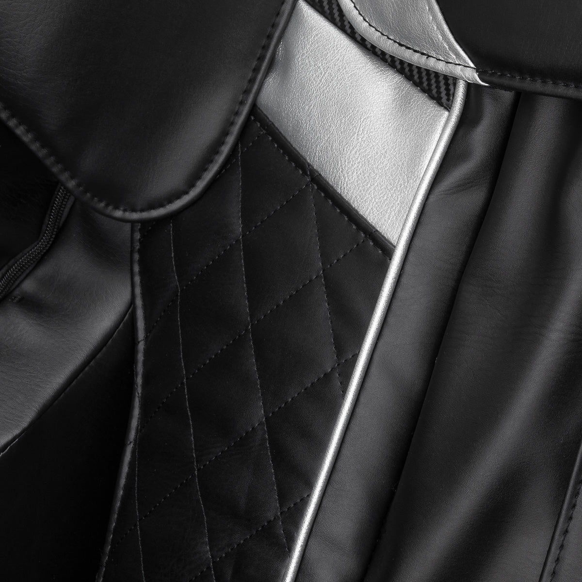 O couro sintético macio e agradável ao toque em tons de preto proporciona alto conforto de uso e fácil manutenção. O material é estético, resistente à humidade e prático no uso diário. Os detalhes exteriores em prata, combinados com um acabamento estrutural em tons de preto, conferem à cadeira um carácter moderno e elegante. A forma compacta e as cores sóbrias fazem com que o modelo se encaixe perfeitamente em vários designs de interiores. Sakura Prime 101 é uma proposta ideal para pessoas que procuram relaxamento diário – tanto após um dia intenso como após esforço físico aumentado.
