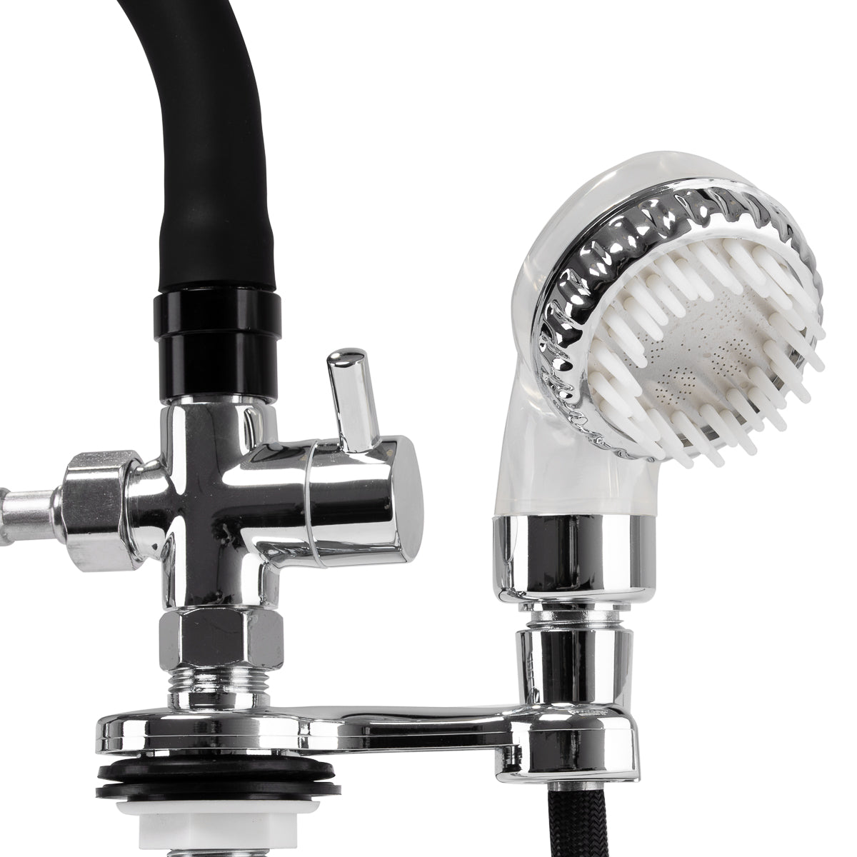 Torneira de queda d'água com misturador, concebida para lavatórios de cabeleireiro, é uma parte indispensável do equipamento profissional de salão. Facilita a ligação conveniente da água à lavagem e proporciona conforto tanto ao cabeleireiro como ao cliente. Graças às mangueiras de ligação em aço trançado incluídas, a torneira caracteriza-se por alta durabilidade e resistência à abrasão.